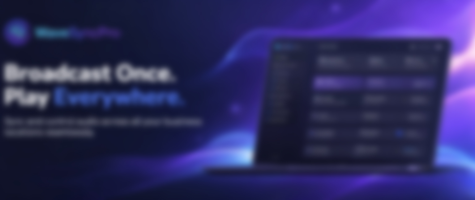 Play Everwhere Sync and control audio across all your busines locations seamlessly. Broadcast Once Portal Play Everwhere Sync and control audio across all your busines locations seamlessly. Broadcast Once Portal